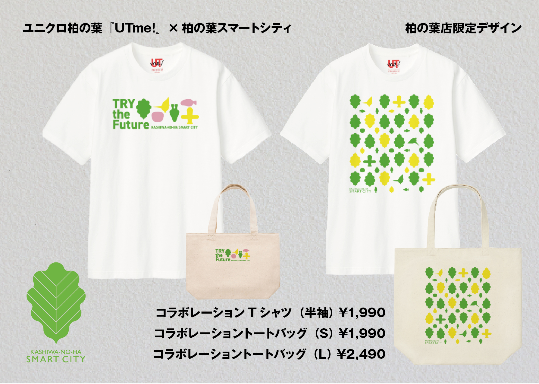 ユニクロ ららぽーと柏の葉店限定で販売しています。(Tシャツ1,990円、トートバッグ1,990円~)。